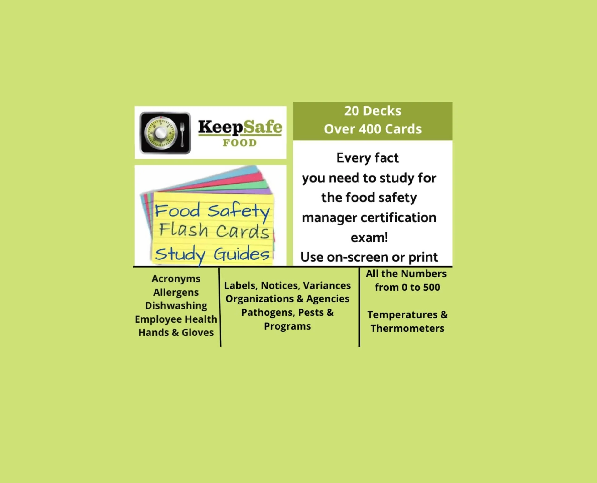 Categories: Select a Category FlashCards Store FlashCards | Food Safety FlashCards: 20 Q/A Decks $19.99 Add to Cart Added!